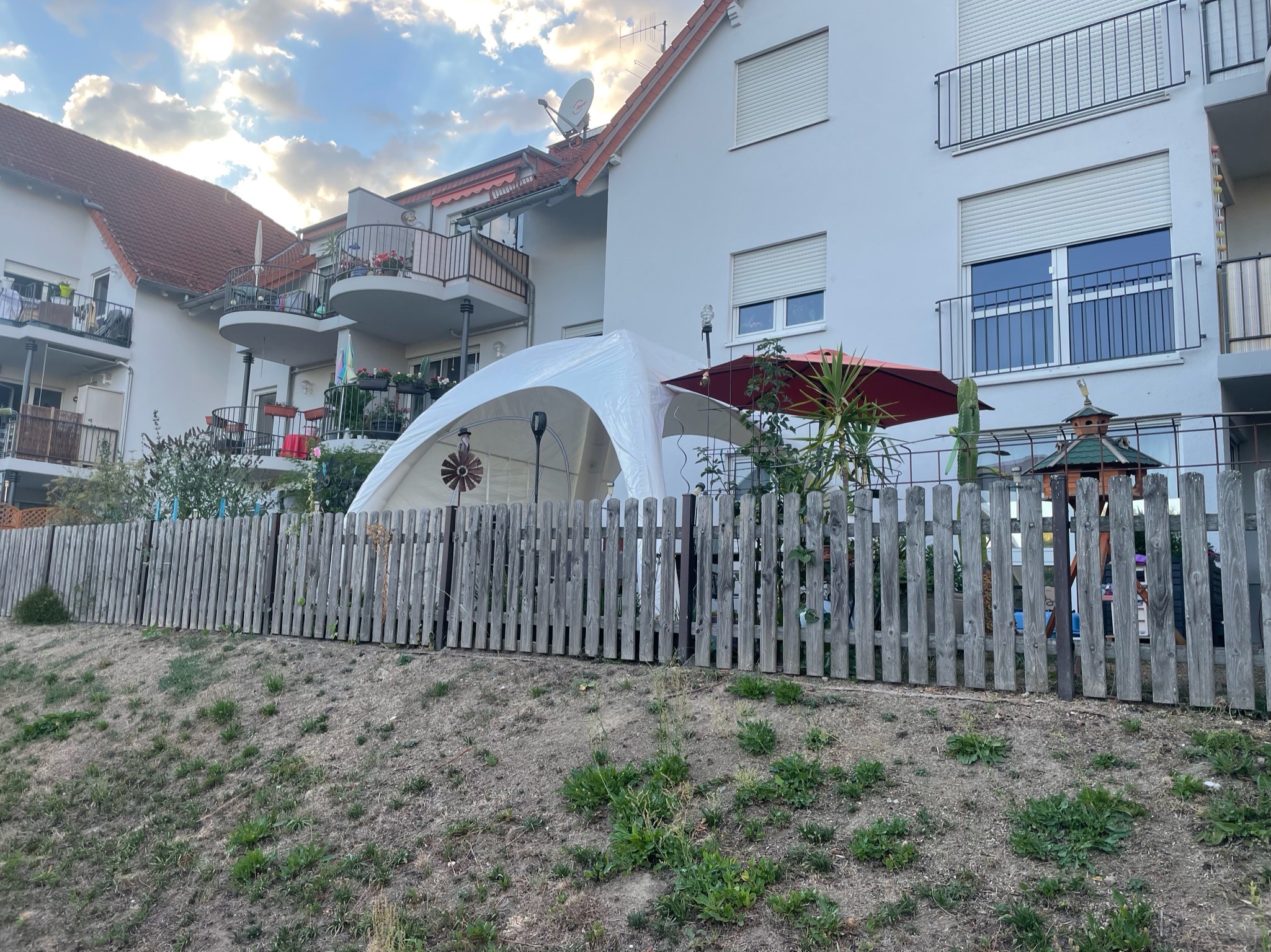 - 1 Person reicht zum „Aufbau“ aus, denn die Pumpe baut den Pavillon allein auf 😉