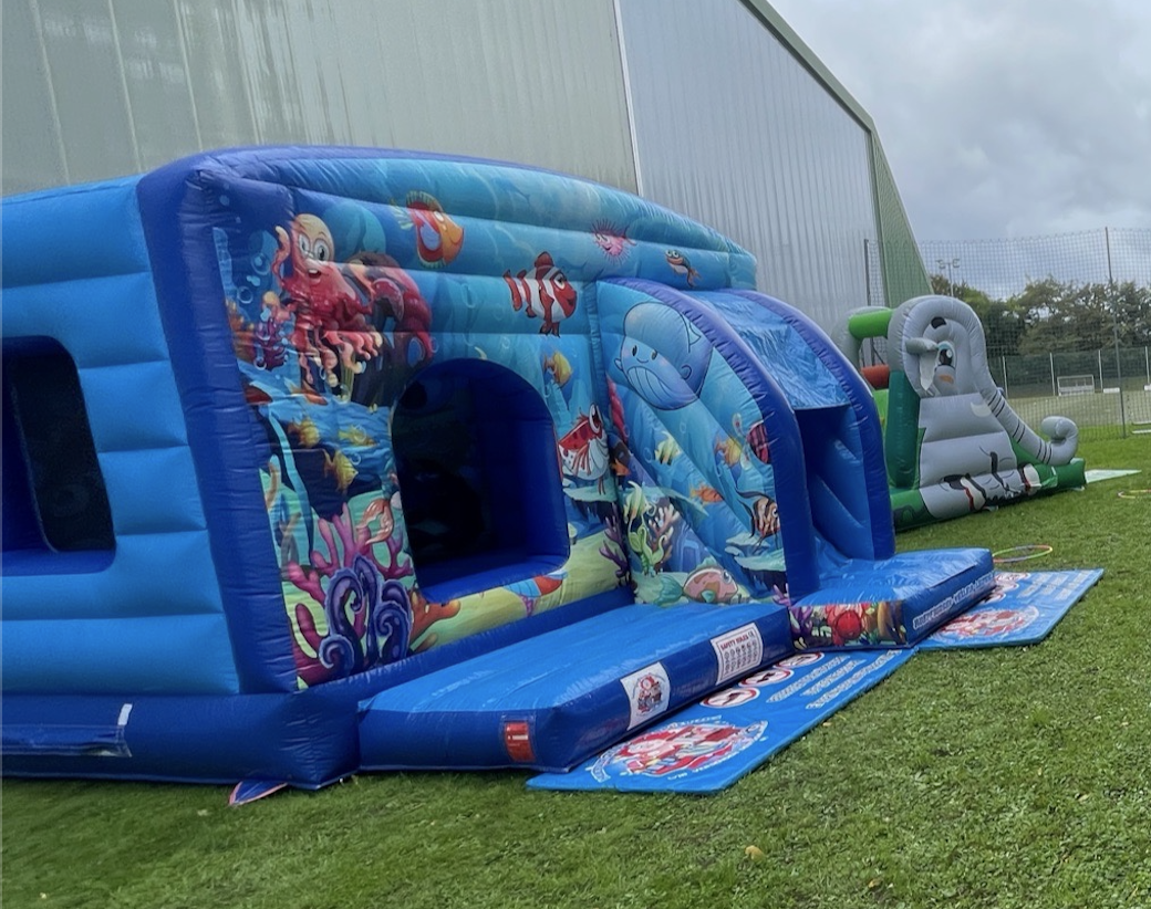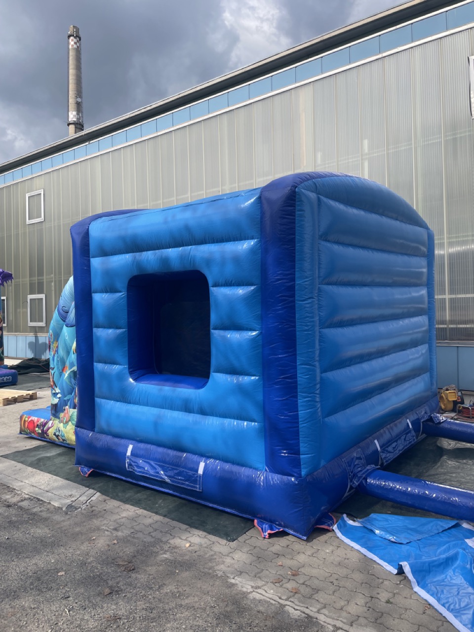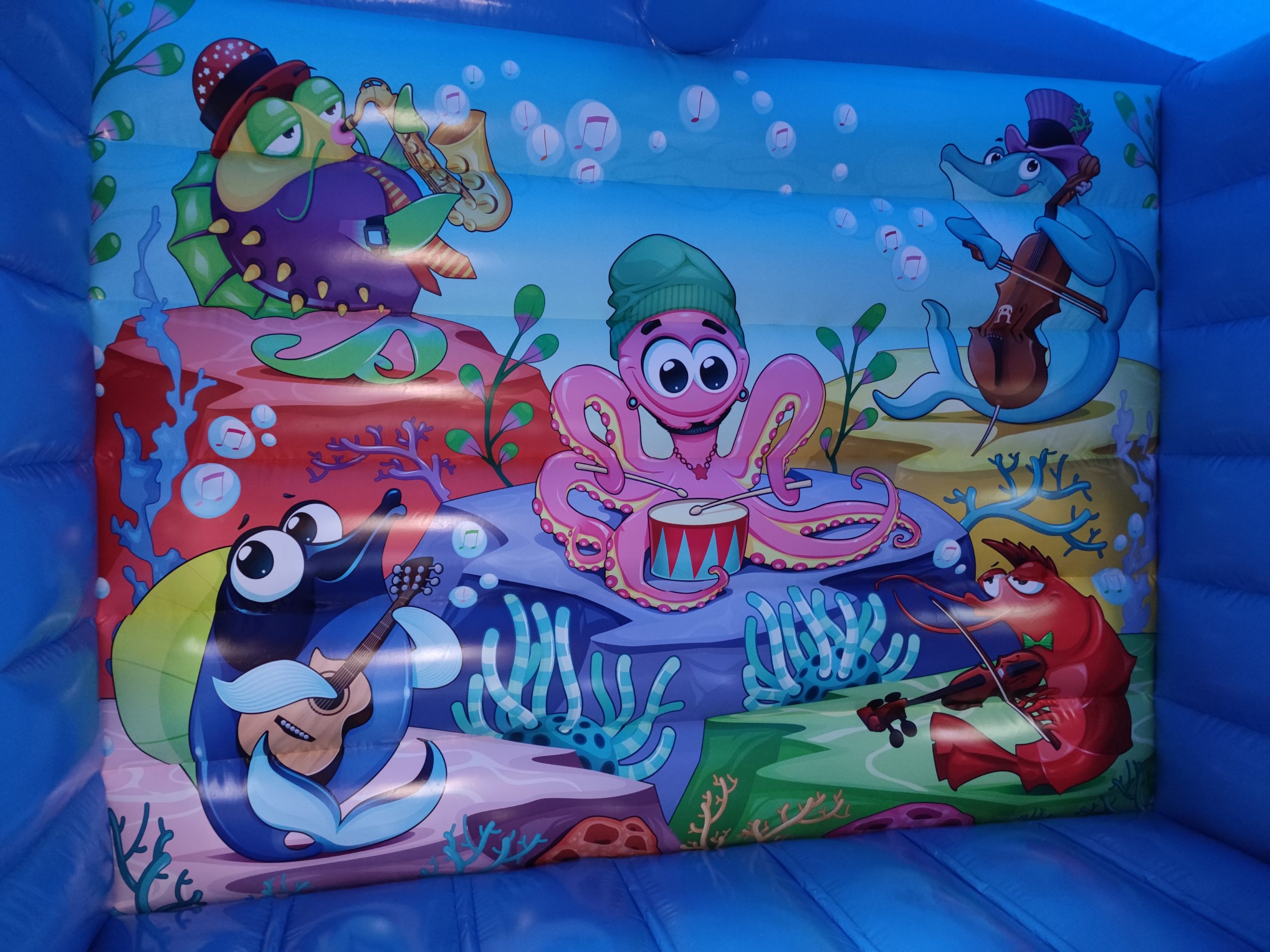Diese schöne Hüpfburg “UNTERWASSERWELT” ist sehr beliebt. Sie hat eine stabile Springfläche, ist aufwendig digital mit lustigen Unterwassertieren bedruckt und hat vorn eine Rutsche. Durch das stabile Netz an den Seiten ist Sie für Eltern sehr gut einsehbar. Das Dach schützt die Kinder bei starker Sonne und auch vor einem leichten Regen. Die Hüpfburg eignet sich besonders für Events, Feste oder Kindergeburtstage.